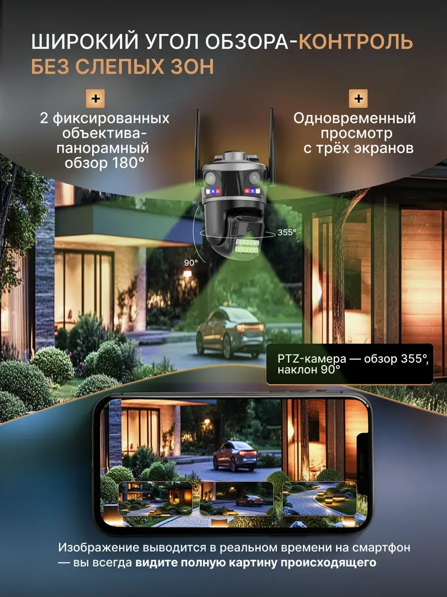 Камера видеонаблюдения уличная для дома Wi-Fi + 128Гб + 3м