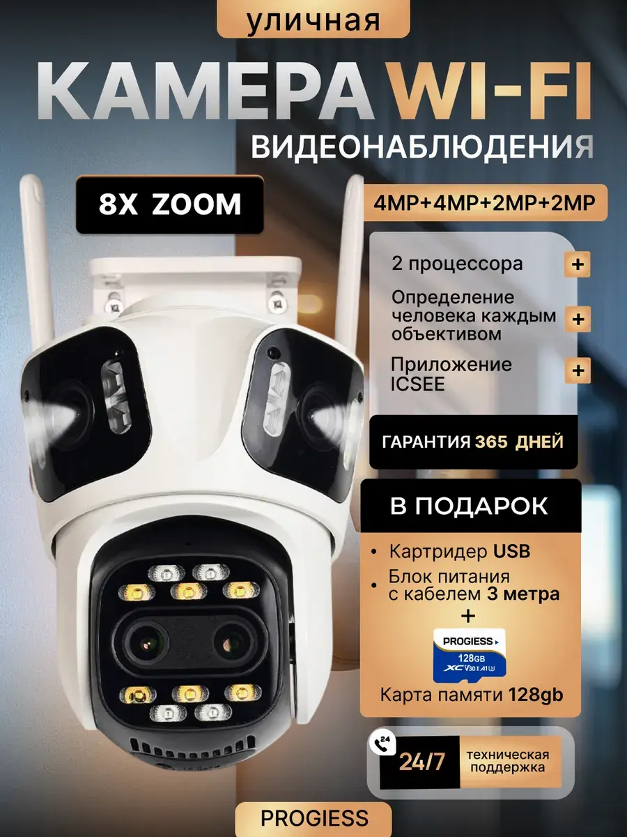 Камера видеонаблюдения уличная для дома Wi-Fi 8МП-8Х