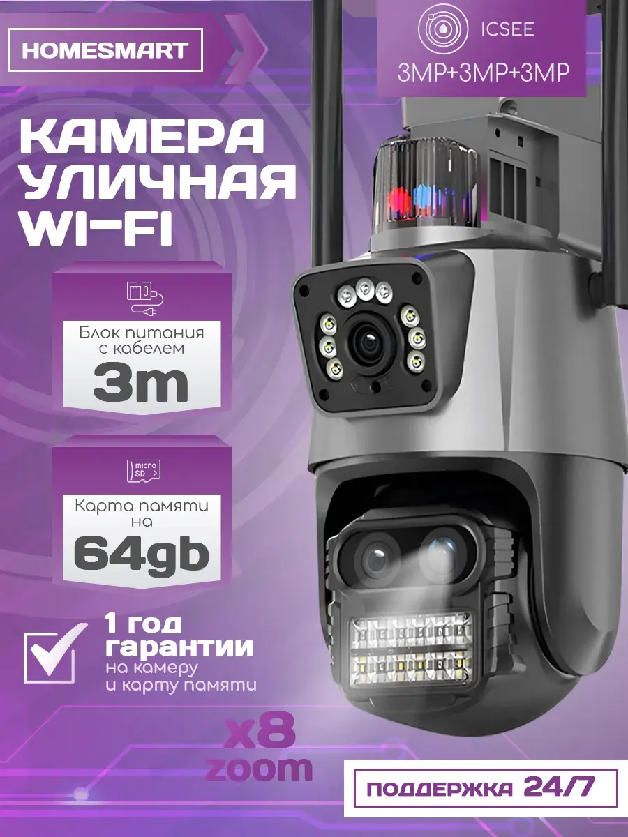 Уличная камера видеонаблюдения 6MP зум 8Х + MicroSD 64Gb
